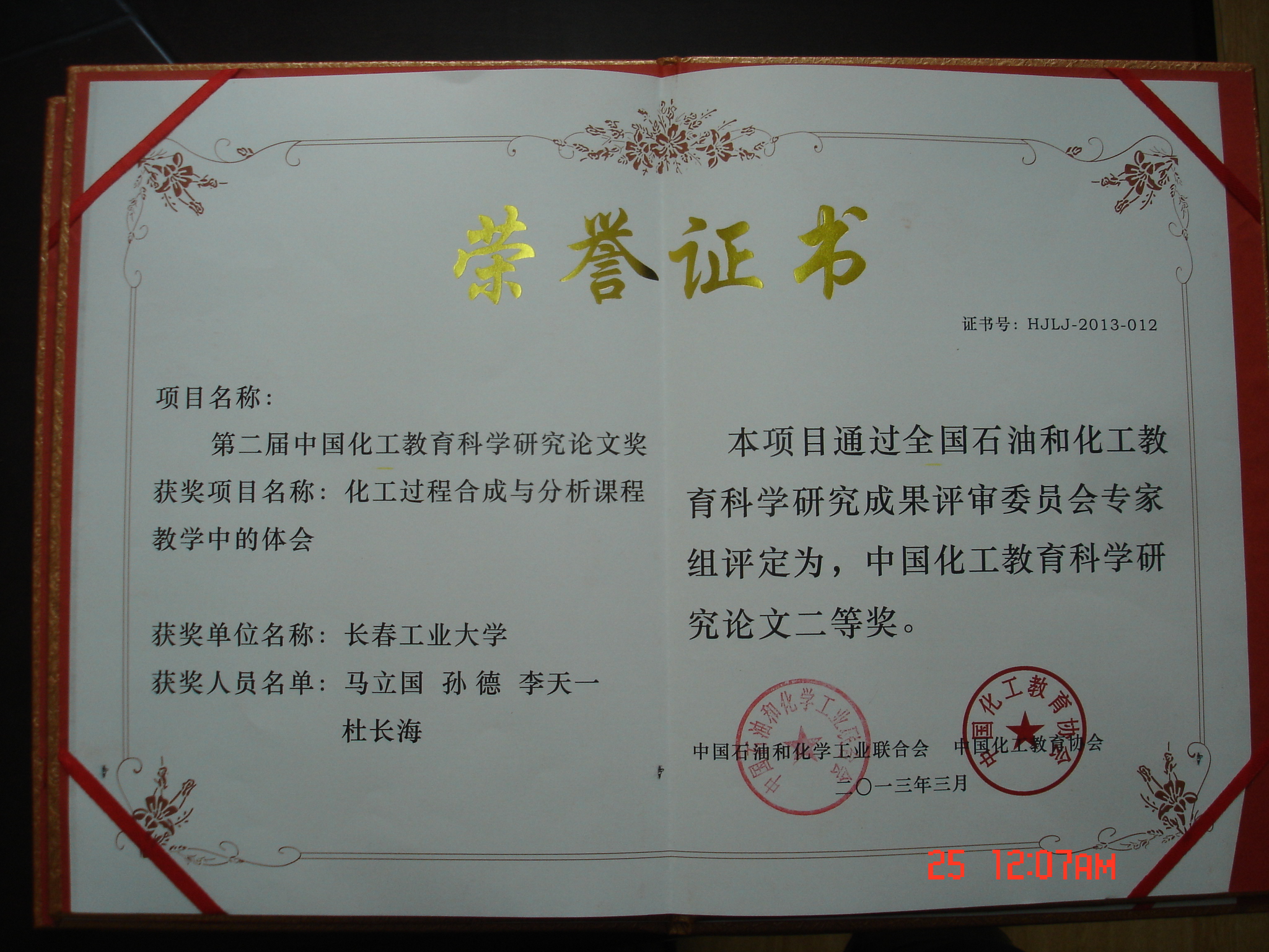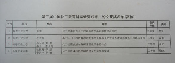 化工网讯(记者刘芳)中国石油和化学工业联合会、中国化工教育协会于2012年组织开展了第二届中国化工教育科学研究成果奖评选活动。3044AM永利集团官网共有2项教学成果荣获化工教育科学研究成果奖,2篇论文荣获化工教育科学研究论文奖。