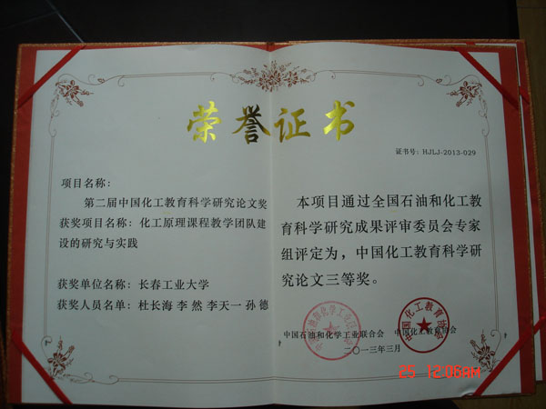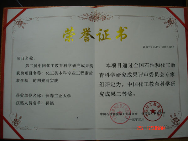 据悉,中国化工教育科学研究成果奖是中国石油和化学工业联合会、中国化工教育协会联合举办的,是全国石油化工领域重要的行业奖项。该奖项的评选工作是为了提高全国化工院校教学质量和教育科学研究水平,展示近两年来在科学发展观引领下化工教育领域取得的优秀教育科学研究成果,总结化工各类教育的教学改革的成功经验,交流和探索院校内涵发展、专业建设、实践创新的新思路与新途径。