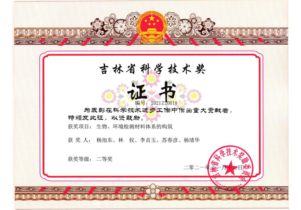 2021年吉林省科学技术奖二等奖