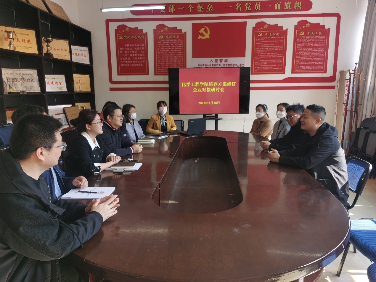 (通讯员:王璐)3月30日上午10时,为进一步做好化工公司各专业2022版人才培养方案的修订工作,院长高光辉、教学副院长李贞玉、各系主任与吉林省泽葳医疗器械股份有限公司技术开发部经理郑子龙、产品部经理张广有共同召开座谈会,就2022版专业人才培养方案修订、课程建设等问题进行了深入研讨,充分了解企业需求。
