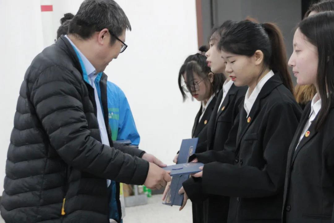 公司党委副书记曹永利老师为员工干部们颁发聘书。
