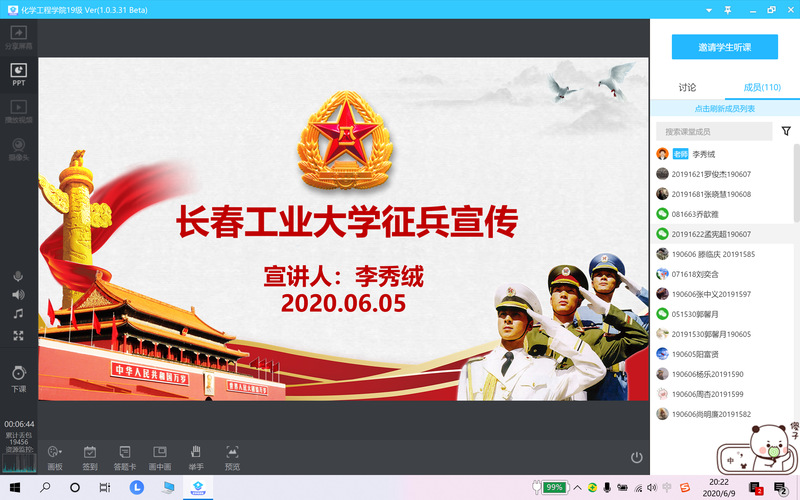 新闻网讯(通讯员陈思琦)为了充分调动青年员工应征入伍,献身国防的积极性,配合学校2020年征兵工作。6月8日,3044AM永利集团官网举办2019级征兵政策宣讲会。会议由2019级辅导员李秀绒老师主讲,2019级全体员工参加了会议。