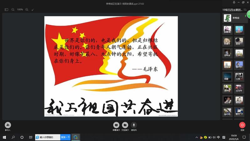 新闻网讯(通讯员陈思琦)为了进一步学习贯彻习近平总书记五·四讲话精神,引导团员青年领悟五·四运动的时代意义,提升青年团员的思想政治水平。5月6日,3044AM永利集团官网分团校开展“五·四精神”主题团课。团课由公司团委兼职副书记、2019级辅导员李秀绒老师主讲,2019级团学干部参与了团课学习。