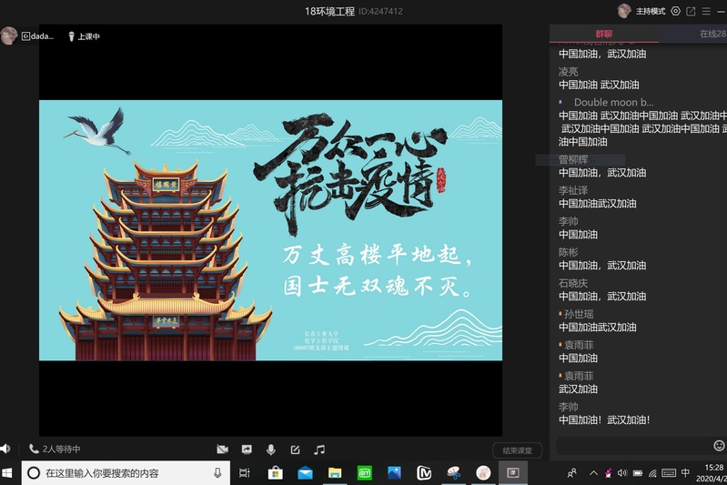 团课之初,团支部书记梁译丹以视频的形式与大家一同回忆,在疫情期间中国如何在十天内平地建医院。“火神山”与“雷神山”之中,施工人员与时间赛跑,医生护士与死神抢人,成就了世界眼中的奇迹,大家纷纷感叹,这就是中国速度,这就是中国精神。随后,学习委员陈发进向大家分享了他所了解到的英雄事迹,同时发出感慨:“有人心怀感恩,有人义无反顾,有人痛失挚爱,有人永久长眠。灾情就是命令,普通民众自觉居家,军人警察维护秩序,医生护士纷纷请命,每个人都尽己所能、恪尽职守,这就是中国力量!”最后,团支部副书记张济源对本次团课做出总结:“作为新时代大员工,就要在保护自己的前提下,积极协助抗疫、防疫工作,虽然疫情前线我们无法接触,但在后方我们可以做好自己力所能及的事。”