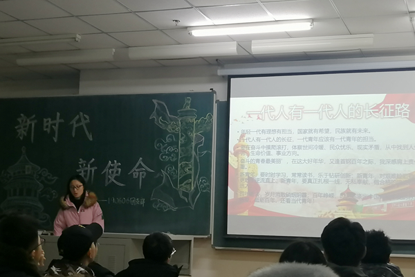 会上,团支部副书记贾丽辉带领支部成员学习十九大精神和习近平新时代中国特色社会主义思想,进而引领同学们更深入的思考新时代的大员工应该拥有什么样的精神,如何将习近平新时代中国特色社会主义思想融入自身、融入生活之中。同学们表示:身为新时代青年的我们要不忘初心,牢记使命,在奋斗的道路上摸爬滚打,为实现中华民族的伟大复兴的中国梦而不懈努力。最后,团支部副书记贾丽辉对本次团支部会进行了总结,她说:同学们要有作为,有担当,勇于拼搏,为祖国发展注入蓬勃的青春力量,展现新时代新青年的新风采。