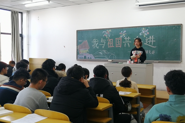 新闻网讯(通讯员田畅畅李紫嘉)为庆祝新中国成立70周年,弘扬爱国精神,促进广大团员青年深入了解新中国70年来的发展与变化。180601班团支部于11月29日在北湖校区主楼1615教室举行“我与祖国共奋进”主题团课。此次团课由团支部书记李俊松主持,团支部全体成员参加了学习。