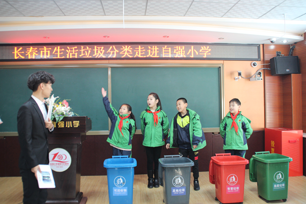 活动伊始,首先由吉林省生态文化协会副会长、吉林省生态文明网副主编周寰宇讲话,他在讲话中强调:环保要从儿童抓起,要正确引导儿童参与到环保中来,志愿者要积极参与其中,并对接下来的环保课堂进校园作了详细介绍。随后,南关区自强小学校长李海军表示:学校会全面配合环教宣传工作,为孩子们营造良好的环教学习环境。最后,绿荫环保志愿者协会副会长姚玉琳同自强小学员工代表分享了关于对垃圾分类的认识。启动仪式在互动问答中圆满结束。