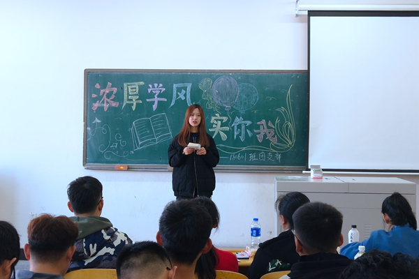 主题团支部会上,各团支部书记首先带领同学们学习了《教育部关于深化本科教育教学改革全面提高人才培养质量的意见》和教育部长陈宝生在新时代全国高等学校本科教育工作会议上的讲话精神,并就近期班级同学们的学风情况进行了分析,希望同学们弘扬“崇真尚理,勤学笃行”的优良学风,努力营造“人人在学习,人人爱学习,人人讲学习,人人会学习”的学习氛围。班级优秀员工代表也向同学们分享自己的学习经验,并希望大家学会把学习习惯由“他律”变为“自律”。最后,各团支部副书记对此次学风建设提升主题团支部会进行了总结,要求同学们在学业上忙起来,树立“求真学问,练真本领”的学习目标,实现综合全面发展。