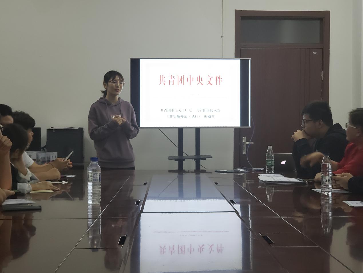 《共青团推优入党工作实施办法(试行)》是基层团组织做好党的助手和后备军的制度保障。学习过程中,各团支部书记、团支部副书记认真学习了文件的总则、推荐对象和推荐条件、“推优”工作程序等相关内容。并对相关组织活动在“智慧团建”中的录入进行了严格要求。会议最后,各团支部代表对上一学期团支部的工作开展进行了总结,并对新学期团支部的工作进行了展望。