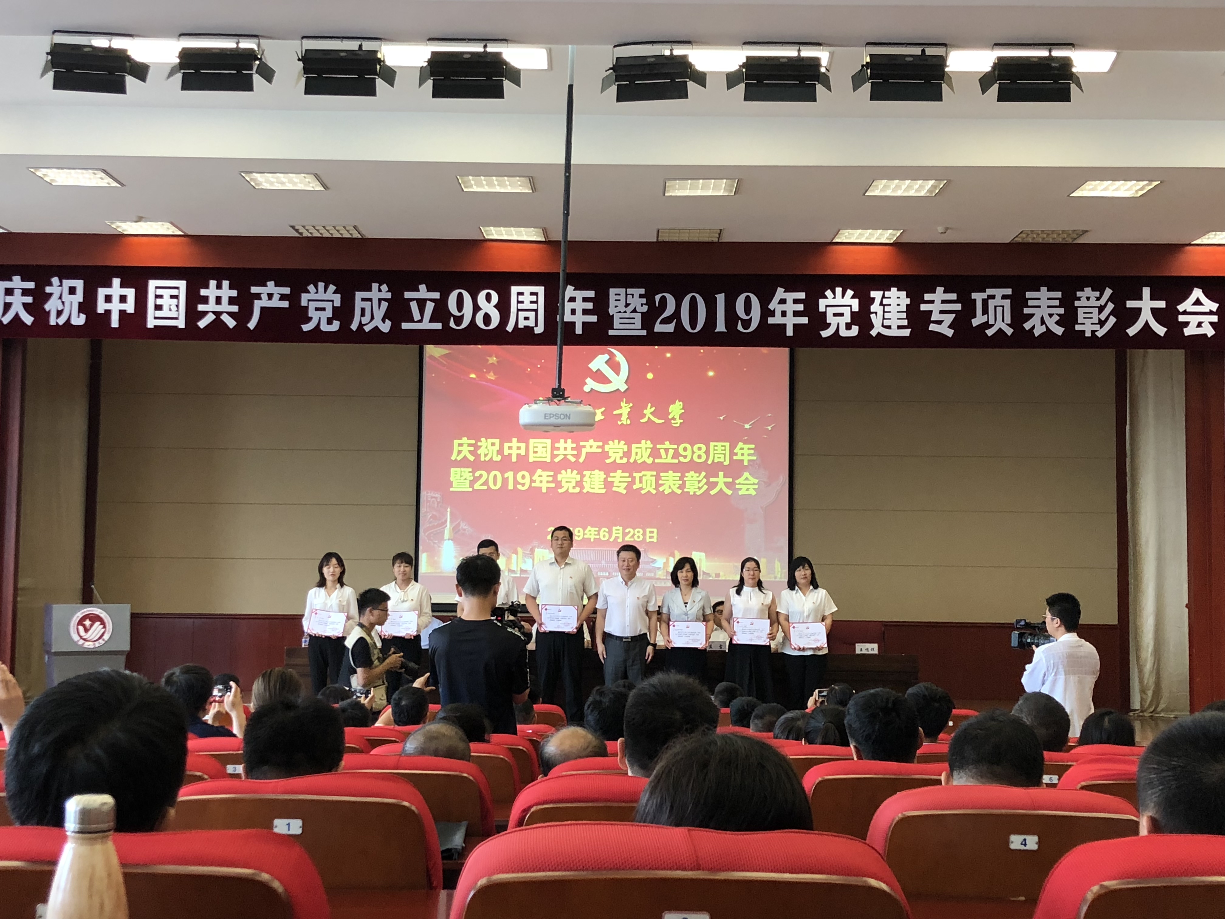 新闻网讯(通讯员肖芳)6月28日,学校在学术报告厅召开庆祝中国共产党成立98周年暨2019年党建专项表彰大会。学校领导、全体中层干部、受表彰集体和个人代表、全体教职工党支部书记、专兼职组织员、党务秘书参加了会议。会议由校长张会轩主持。