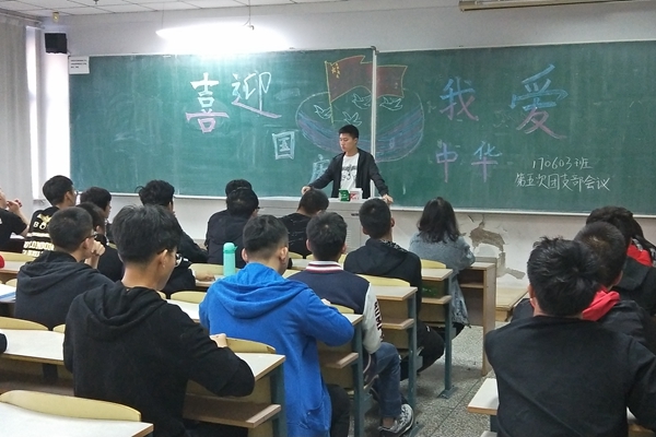 新闻网讯(通讯员宋佳音)为深入开展“学习筑梦”行动和“青年大学习”行动,培养团支部成员的爱国主义精神。9月26日,在祖国的六十九周年华诞即将到来之际,170603班团支部在南湖校区科研楼2301室举行“喜迎国庆,爱我中华”主题团支部会。会议由团支部书记刘香池主持,组织委员常新代负责记录,团支部全体成员参加此次了会议。
