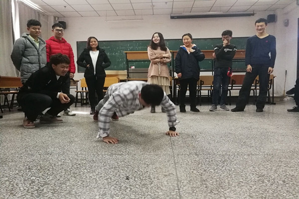 活动中,支部成员分成4组进行游戏比拼,有挑战默契的“眼神传响指”,有考验灵活应变能力的“松鼠和大树”游戏及考验观察能力和智力的小游戏等。同学们风趣幽默,所有人都积极参与,各显其能。活动结束后,同学们以集体舞蹈结束。