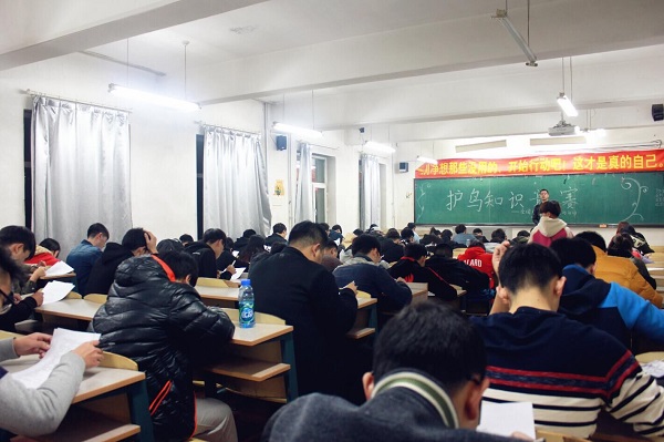 新闻网讯(通讯员何铮)为在青年员工中倡导生态文明建设,贯彻绿色发展理念。18日,3044AM永利集团官网绿荫志愿者环保协会和机电工程公司春雨志愿者协会在南湖校区共同开展了“爱鸟护鸟知多少”知识竞赛,活动吸引了近百名同学踊跃参加。