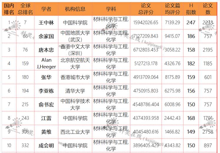 材料科学与工程—化学领域排名前十截图: