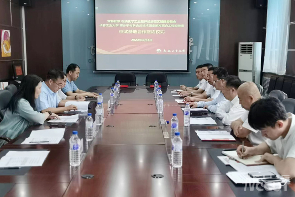 新闻网讯(通讯员 孙树林)8月4日上午,我校与吉林松原石油化学工业循环经济园区中试基地合作签约仪式在南湖校区主楼二楼会议室举行。园区党工委书记、管委会主任马永明率相关部门负责人出席仪式。校长张明耀、副校长林洁琼及相关部门负责人热情接待了马永明一行。