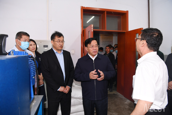 (通讯员 孙树林)2021年9月7日上午,省委副书记、省长韩俊到我校考察调研碳纤维制品科研和产学研进展情况。韩俊强调,要全力推动碳纤维产业关键核心技术攻关、成果转化、全链条发展,为吉林主导产业转型升级培养更多人才。学校领导张会轩、张明耀、林洁琼参加了调研活动。韩俊一行重点考察了碳纤维聚合实验室和碳纤维及复合材料吉林省重点实验室,详细了解了实验室科研进展情况,听取了张会轩校长关于碳纤维产业发展及研究现状的介绍,并与实验室工作人员进行了交流。