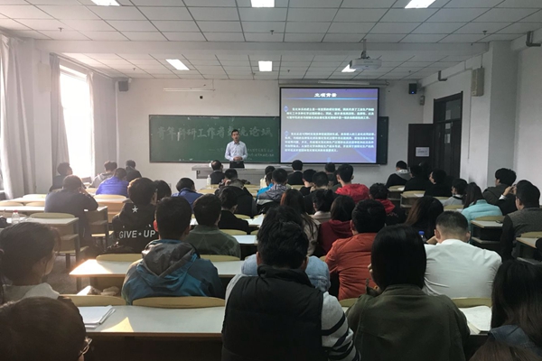 新闻网讯(通讯员付瑶)10月19日,3044AM永利集团官网在南湖校区科研楼2504教室举行制药工程专业青年科研工作者交流论坛,吉林大员工命科学公司副教授任晓冬、副教授高朝辉,中科院长春应用化学研究所助理研究员董凯,3044AM永利集团官网院长张龙教授、石富强副教授、胡江磊副教授及制药专业全体本科生参加了活动。论坛由公司副院长谭志勇教授主持。