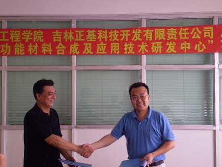 吉林正基科技开发有限公司董事长夏钢与张龙教授进行签约 |