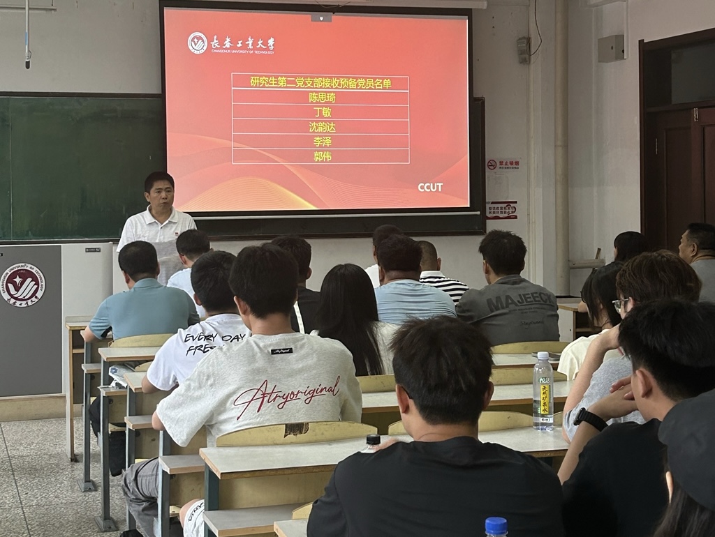 仪式在雄壮的国歌声中拉开帷幕。研究生第二党支部黄向东郑重宣读公司党委批复,正式接收陈思琪、丁敏、郭伟、李泽、沈韵达五名同志为中共预备党员。