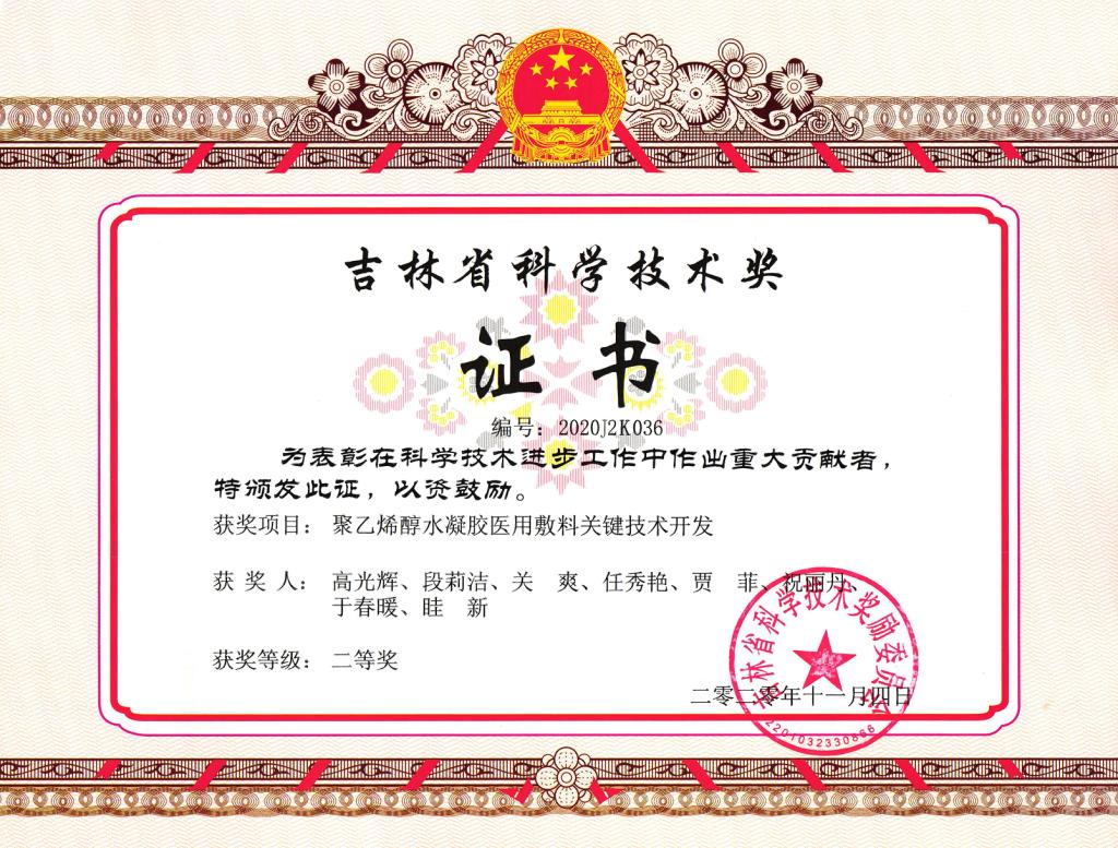 2020年吉林省科学技术奖二等奖