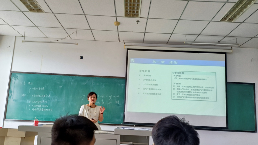 在李贞玉老师讲授的《大气污染控制工程》课程上,运用SPOC平台以及PPT讲解的线上线下混合教学模式。课前,李老师向同学们分享即将学习的优秀教学资源,方便同学们充分的预习,提高学习效率。李老师所采用的PPT板书内容精炼,主次分明,知识点罗列清晰。丰富的教学经验和实践经验使得李老师能精准把握重难点,并以问题形式引导同学们认真思考,面对员工提出的许多专业性问题,李老师耐心解答,员工积极探讨,认真学习,课堂学习氛围浓厚。